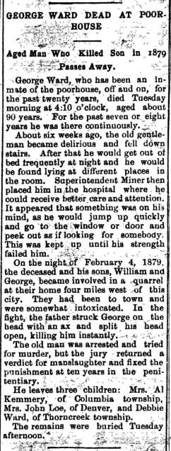 He is survived by his parents and five brothers, namely, Lee, Bert, William and Paul, of Thorncreek township, and Joe, of California. He was a member of the Odd Fellow lodge in this city and was a faithful attender and a hard lodge worker.
