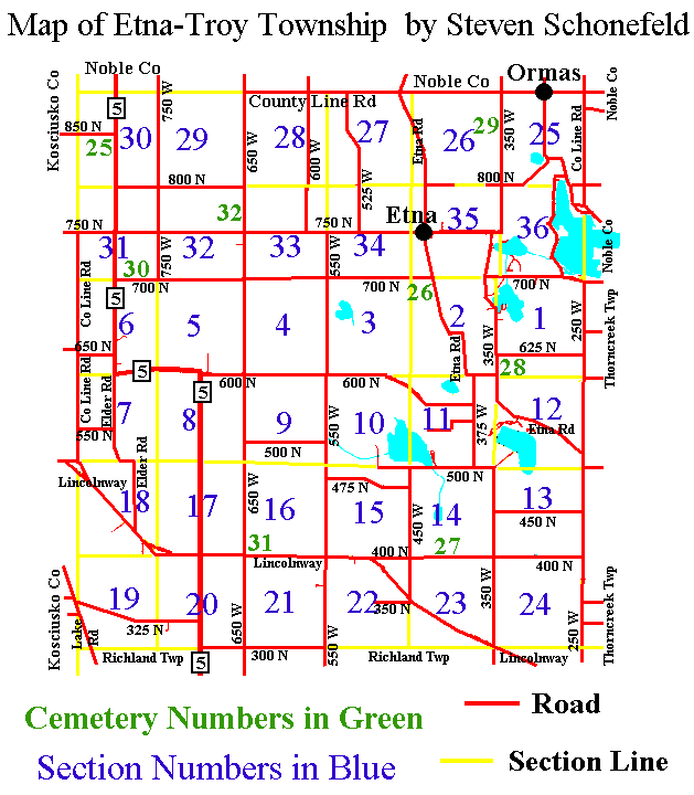 Cemetery Records of Etna-Troy Township Whitley County Indiana, Genealogical Society of Whitley County, 2000