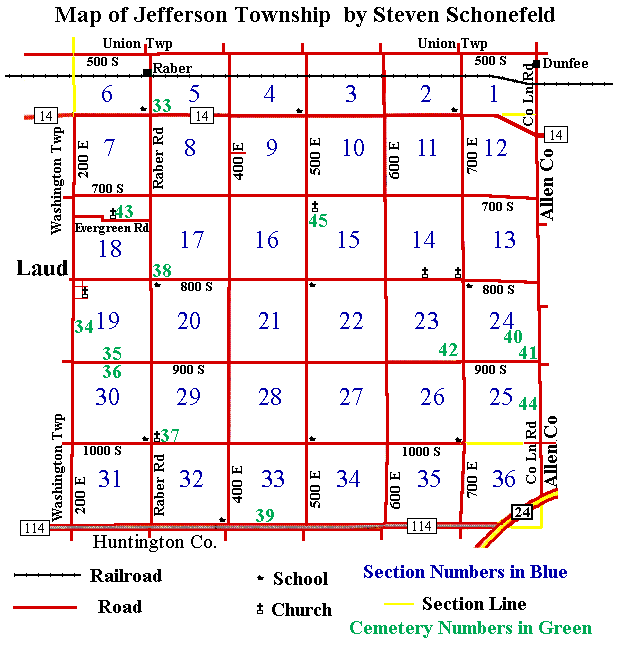 Cemetery Inscriptions Whitley County Indiana by Marjorie J. Kite, Dr. Manasseh Cutler Chapter, DAR, 1967.
